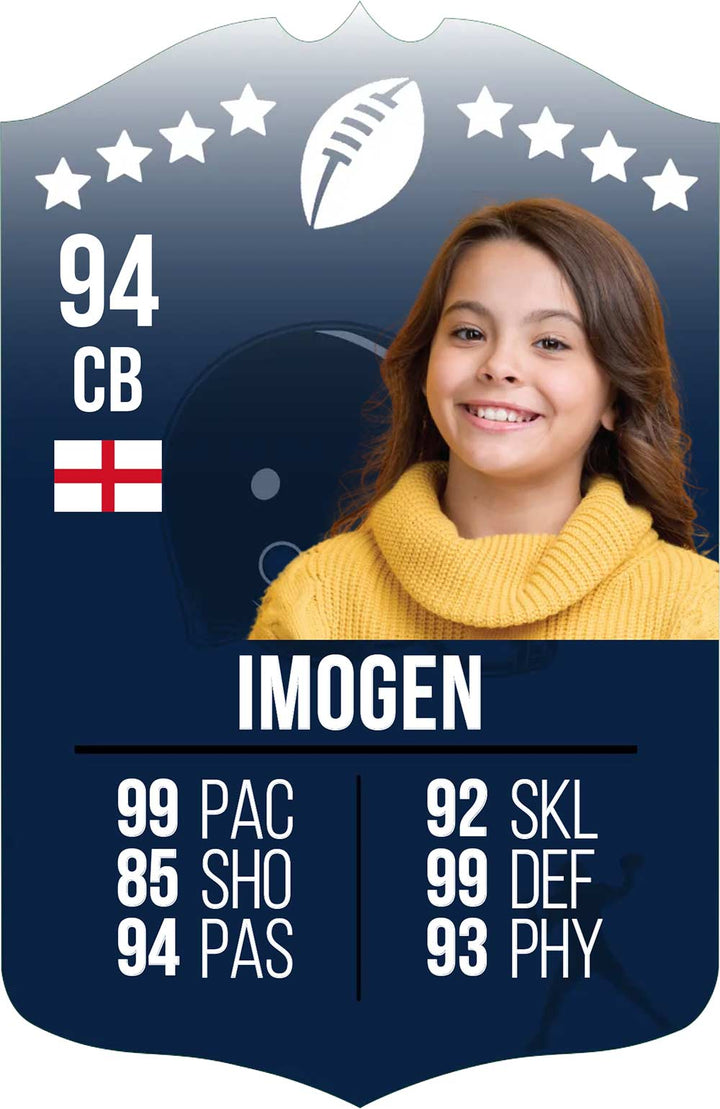 Celebrate your love for rugby with our Personalised American Football Card β the ultimate tribute to the sport's energy, toughness, and team spirit. Designed to showcase your custom image and player stats, this one-of-a-kind card is perfect for young american football fans, budding athletes, or as a standout gift that tackles the ordinary and delivers something truly unique.