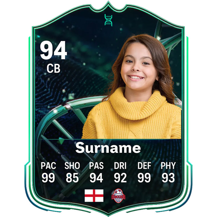 1. Fully Customisable: Personalise every aspect of your  card. Add your own image, player name, position, club, nationality, and stats to create a truly unique representation. Whether it’s for yourself, a friend, or a family member, this card is tailored to showcase your football story.