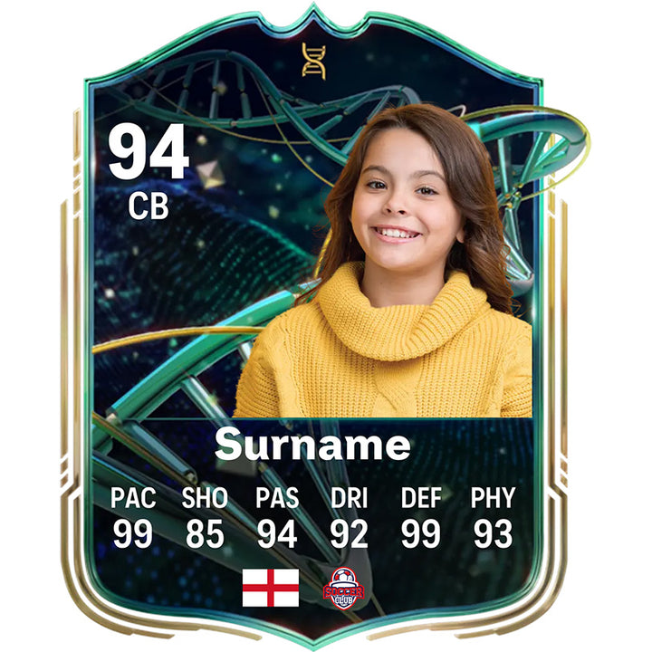 1. Fully Customisable: Personalise every aspect of your  card. Add your own image, player name, position, club, nationality, and stats to create a truly unique representation. Whether it’s for yourself, a friend, or a family member, this card is tailored to showcase your football story.