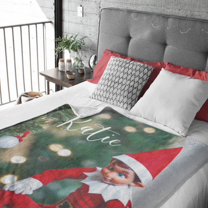 Personalised Naughty Elf Polar Blanket (100cm x 150cm)